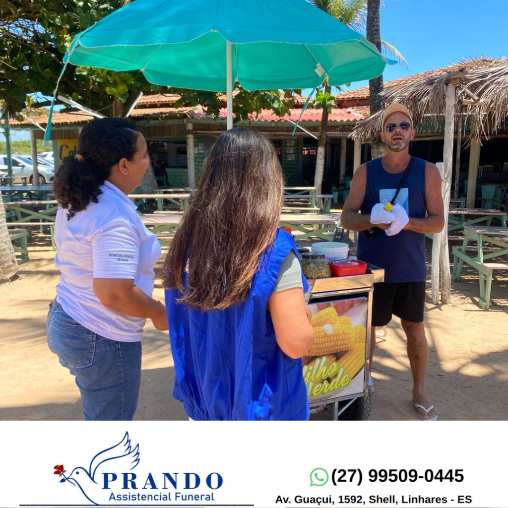 A Secretaria Municipal de Saúde, por meio da Vigilância Sanitária, realizou ação orientativa com comerciantes que atuam nos balneários de Linhares. As recomendações têm o objetivo promover a comercialização segura de alimentos e bebidas durante o período de maior movimento no litoral, que é o verão.